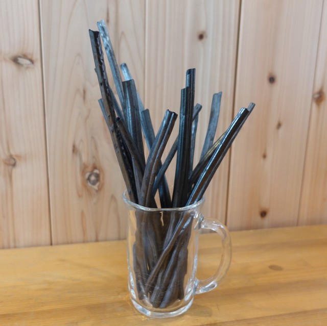 繊維を剥いだあとに残る茎部分(オガラ)をそのまま炭化しました。