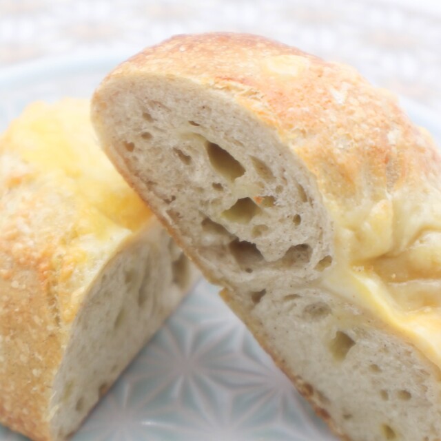 ふっくらした麻の実パン生地とパリッとした4種チーズの食感のコラボレーションがクセになります。