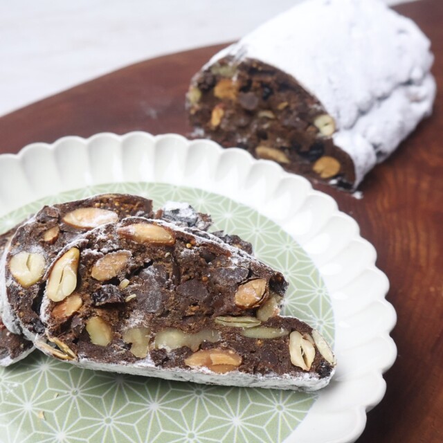 ドライフルーツの甘味たっぷり。グルテンフリー・三大アレルゲンフリーの麻の実×米麹シュトレーンです。